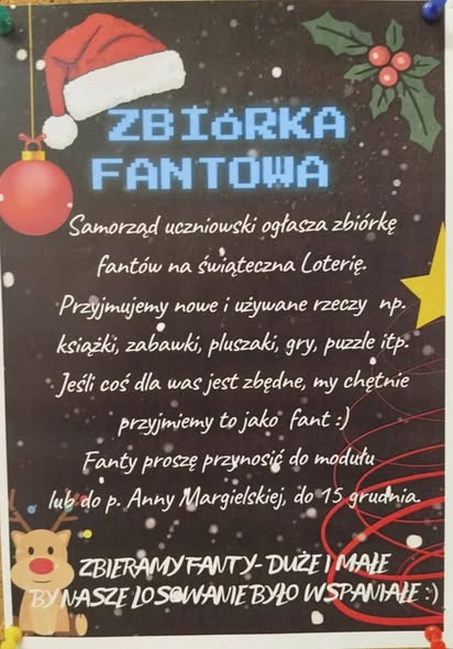 ■ Samorząd szkolny ogłasza zbiórkę na loterię fantową. Szczegóły w załączniku.