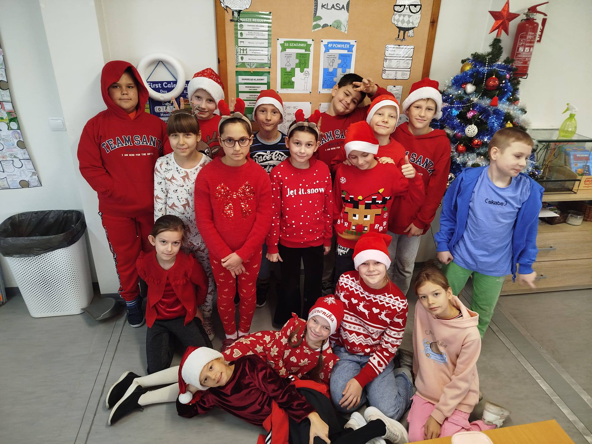 Korytarze szkolne zapełniły się czerwienią mikołajkowych czapeczek! Część uczniów wymieniała się też w tym dniu symbolicznymi podarunkami, klasa 1 i 3 uczestniczyła w warsztatach garncarskich, na których stworzyli małe dzieła sztuki, a klasa 6 wybrała się na lodowisko, gdzie nie brakowało świetnej zabawy i piruetów na lodzie.