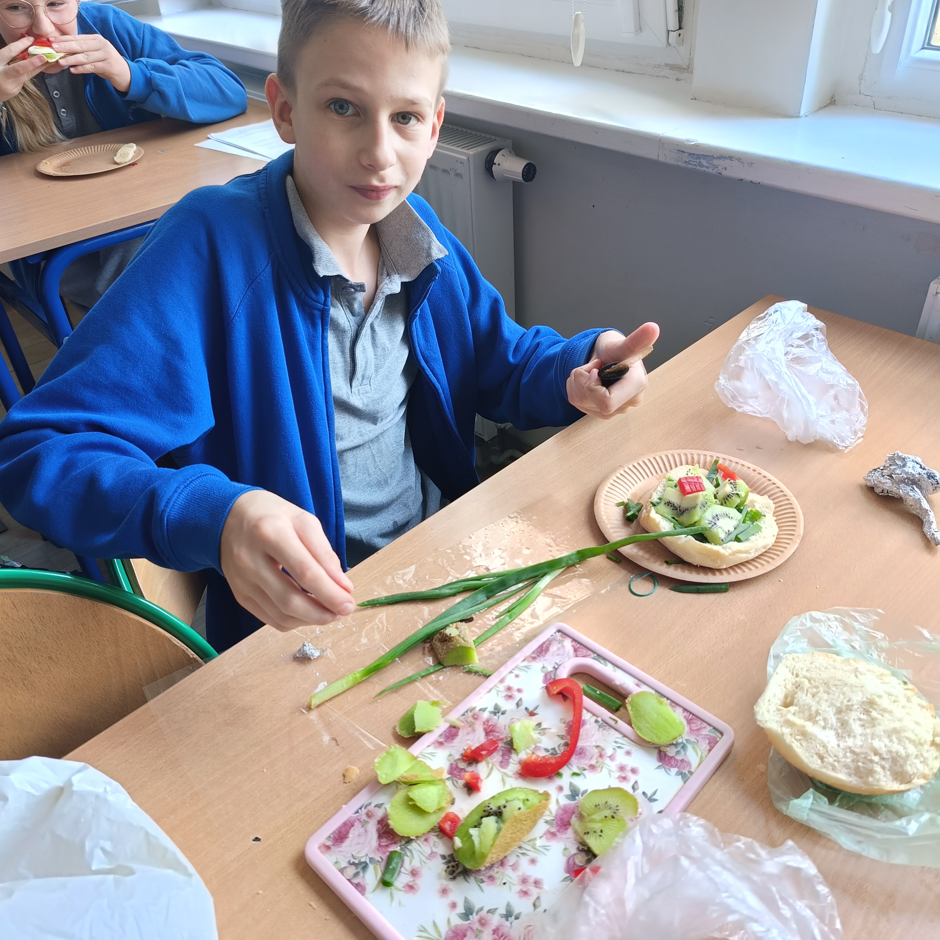 Podczas zajęć dzieci dowiedziały się, dlaczego śniadanie to najważniejszy posiłek dnia, jakie produkty warto wybierać, a których lepiej unikać. W grupach przygotowywały własne zestawy zdrowych śniadań, wykorzystując świeże owoce, warzywa, nabiał oraz produkty zbożowe. Zwieńczeniem zajęć była wspólna degustacja i rozmowa o tym, jak codzienne wybory żywieniowe wpływają na samopoczucie i koncentrację.